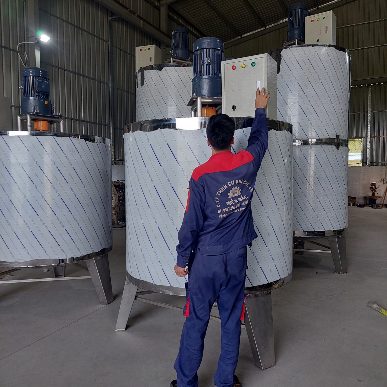 - Tủ điện điều khiển là bộ phận không thể thiếu của bồn khuấy. Tủ điện có mạch điều khiển sẽ giúp cho công nhân vận hành bồn khuấy được an toàn và hiệu quả.