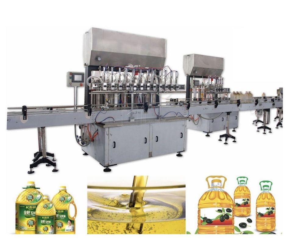 * Máy chiết rót dầu ăn tự động. cho chai 1 lít và dây chuyền chiết rót dầu ăn tự động cho chai 3 lit - 5 lít. dây chuyền chiết rót tự động dầu ăn định lượng bằng piston chiết rót định lượng theo mỗi chai và can, máy có hệ thống xoáy, đóng nắp trên cùng 1 hệ thống, máy có hệ thống co màng chụp trên nắp chai , can tất cả được đồng bộ trên 1 hệ thống dây chuyền khép kín.