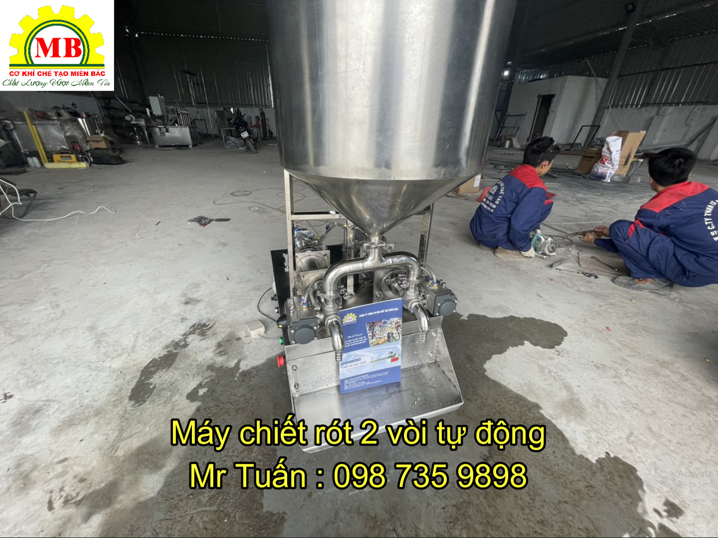 Máy chiết rót 2 vòi là một loại thiết bị chiết rót dung dịch dạng lỏng và đặc sệt ví dụ như : nước, sữa, nước mắm , tương ớt, nước giặt , dầu ăn ....Hiện đang được ứng dụng vào nhiều mô hình sản xuất khác nhau thya thế hoàn thoàn cách chiết thủ công.