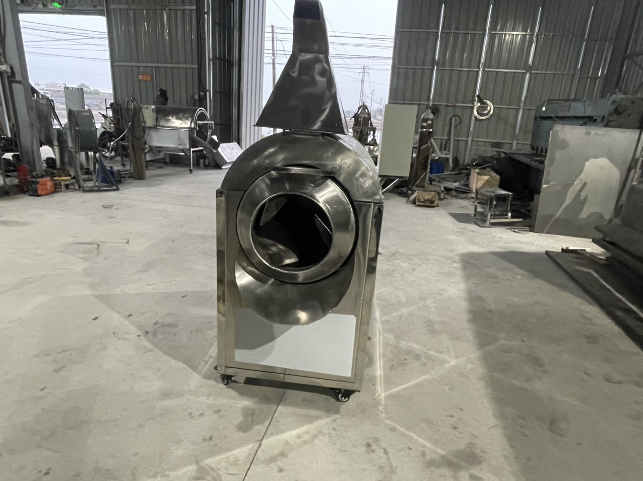 Máy rang hạt công nghiệp là thiết bị máy móc do công ty cơ khí chế tạo Miền Bắc nghiên cứu và sản xuất. Máy được thiết kế phù hợp với các cơ sở sản xuất vừa và nhỏ chuyên dùng để rạng các loại hạt : hạt diều , lạc , đỗ , rễ cây để phục vụ các cơ sở sản xuất thuốc đông y. Máy được thiết kế chắc chắn toàn bộ được làm từ inox 304 , Máy có thể điều chỉnh được kích thước theo nhu cầu của người sản xuất .